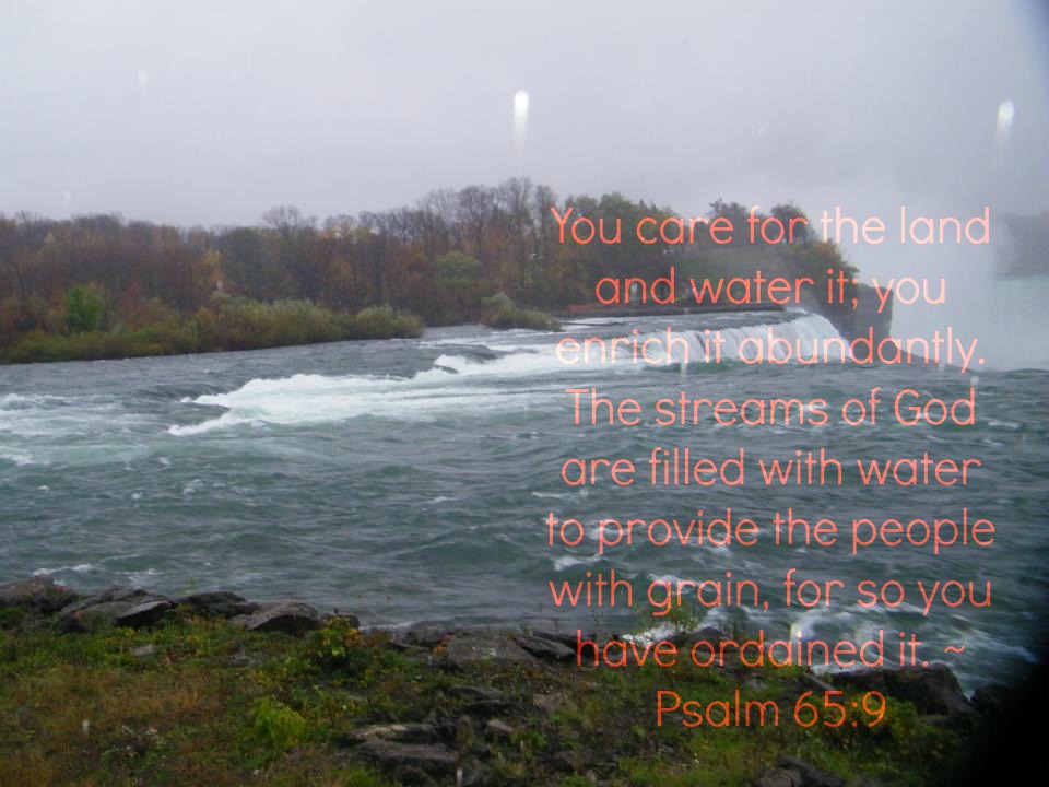 Psalm 65:9 “You care for the land and water it; you enrich it abundantly. The streams of God are filled with water to provide the people with grain, for so you have ordained it.” (NIV)