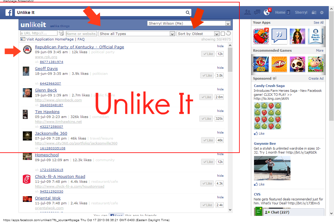 Once you are in the Unlike It App, You will be able to sort your pages by using the drop down menus.