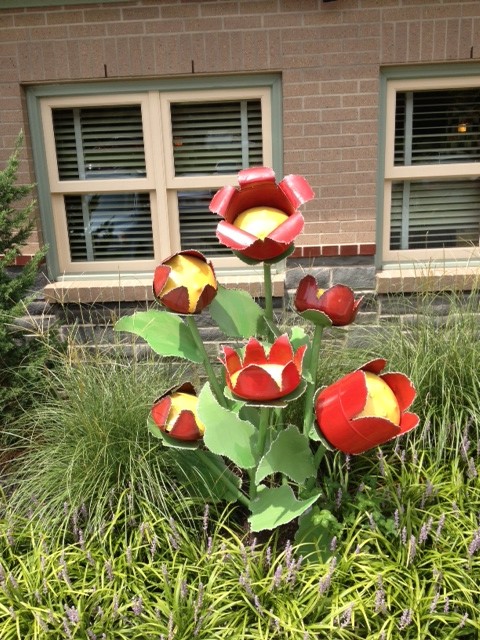 There was a health food store in Joplin that had very large metal flowers in front of the store. My husband convinced my stepdaughter they were real. It was funny and I know it’s a “you had to be there to get it” moment, but your flowers reminded me of a good memory.