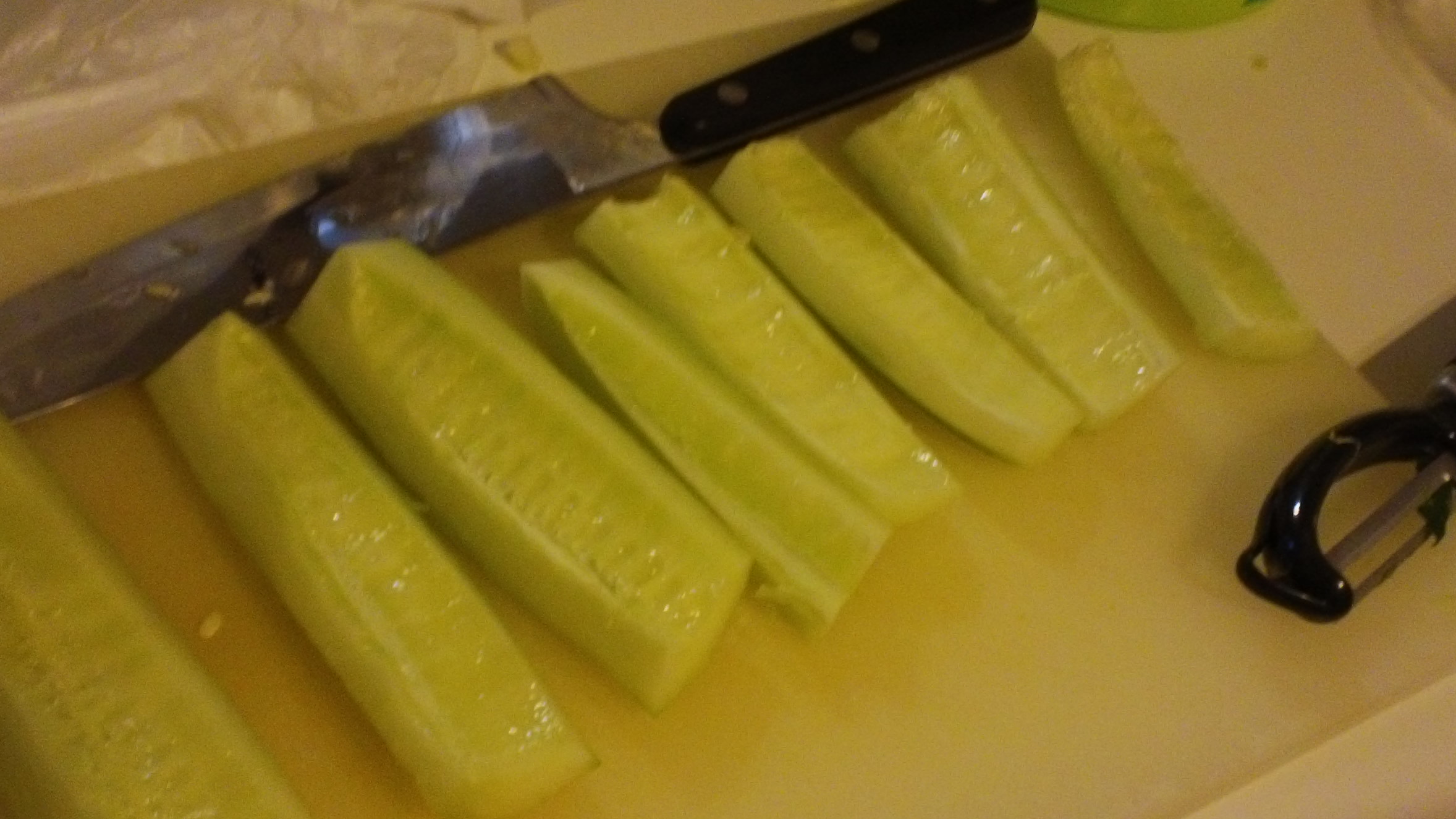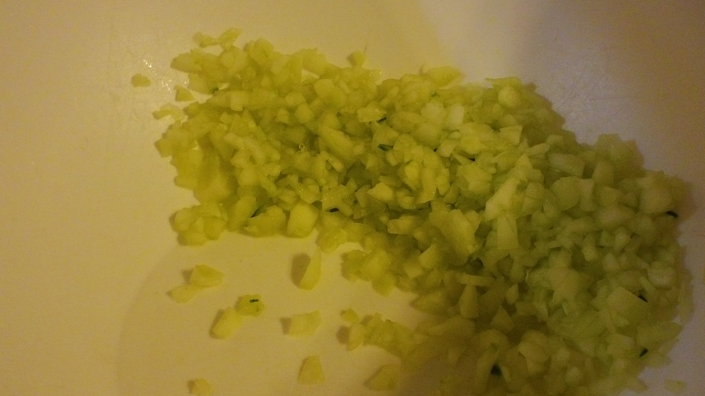 ~ 1 English hothouse cucumber, peeled, halved lengthwise, seeded, minced (or you can use 2 regular plain jane cucumbers)
