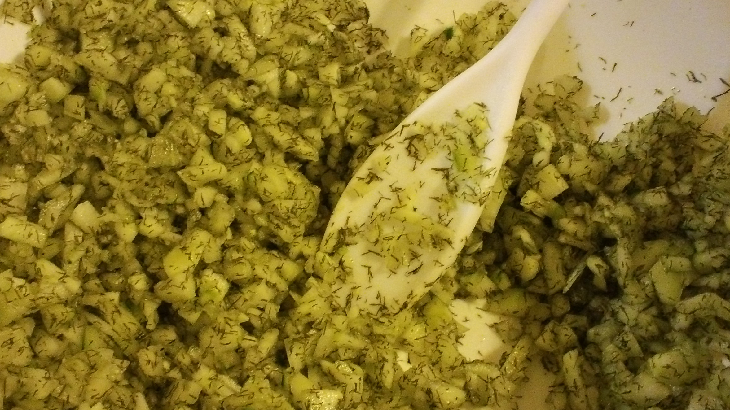 Let drain for 30 minutes and then press out as much excess liquid as possible from cucumber.