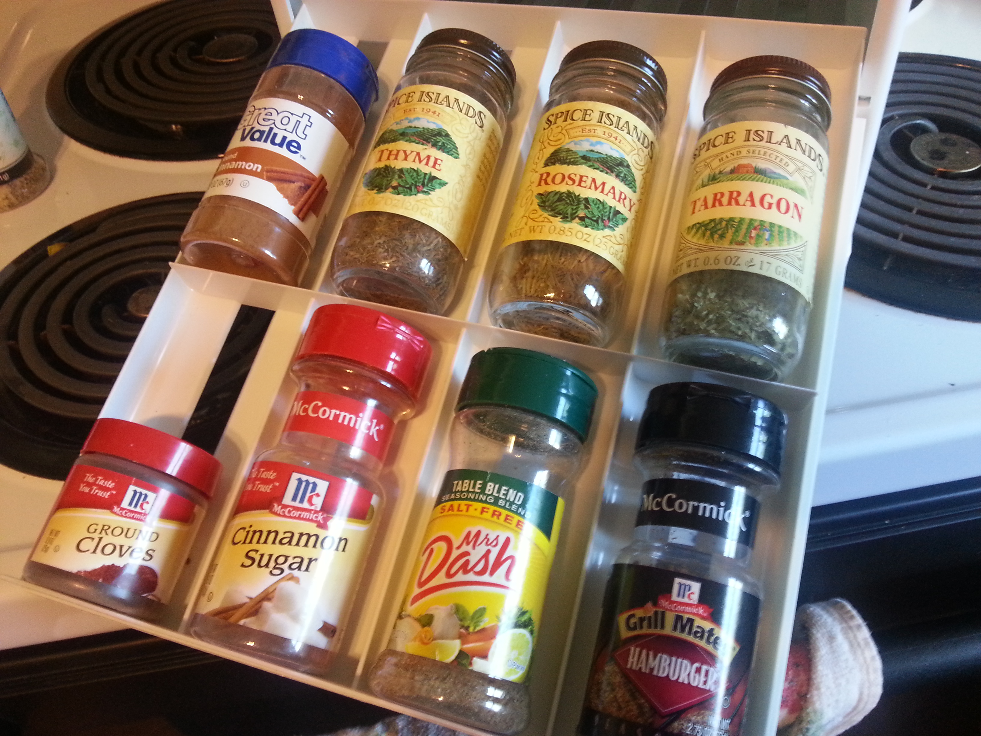 Sadly if you need a spice in my house, you have to search the spinning thing as the kids call it. The usual ones were always kept in the same spot but other than Salt, Pepper and Garlic you had to pick through dozens on bottles and boxes. As you can imagine, this often resulted in several bottles of the same spice because if you couldn't find it, it went on the shopping list. Every once in a while, one of the children would straighten my spice cabinet but it never stayed that way for long.